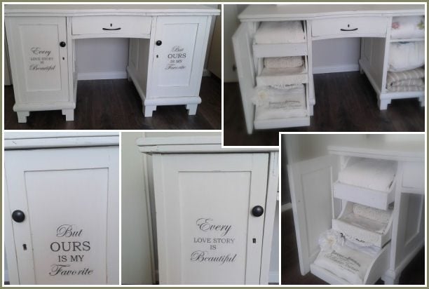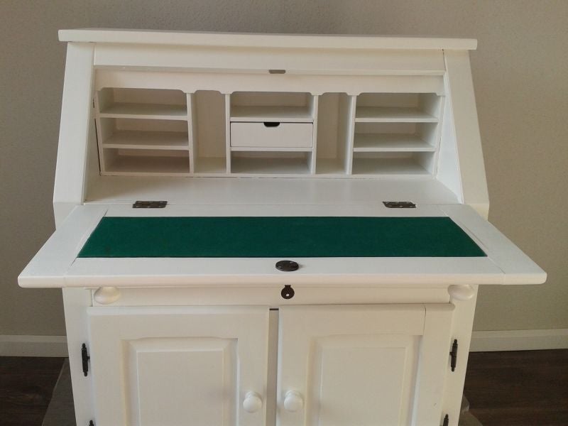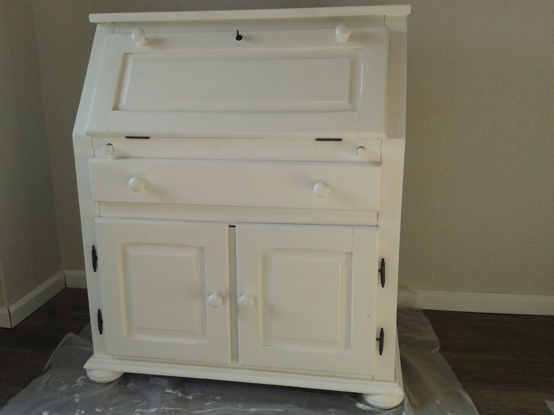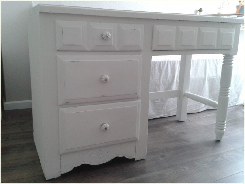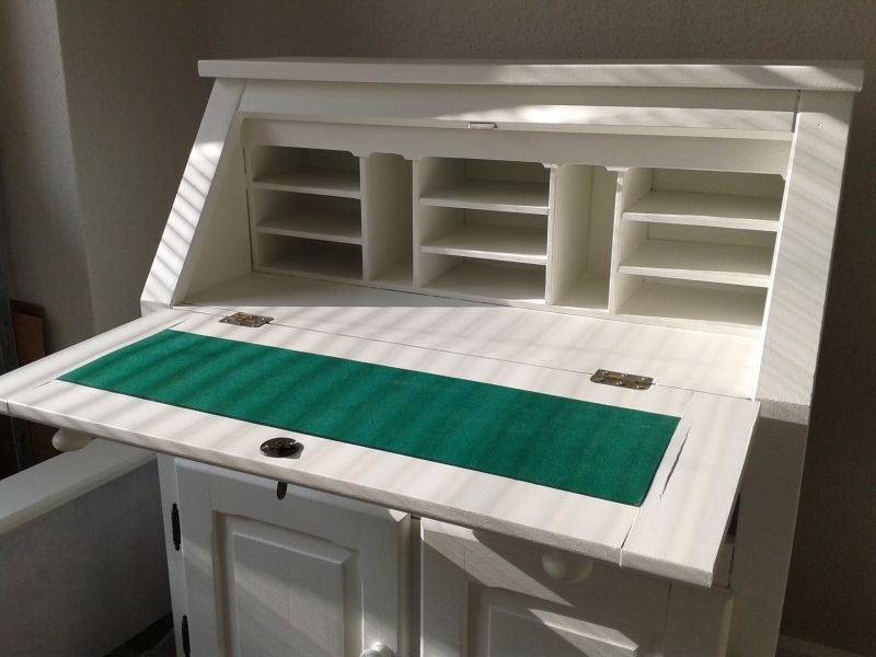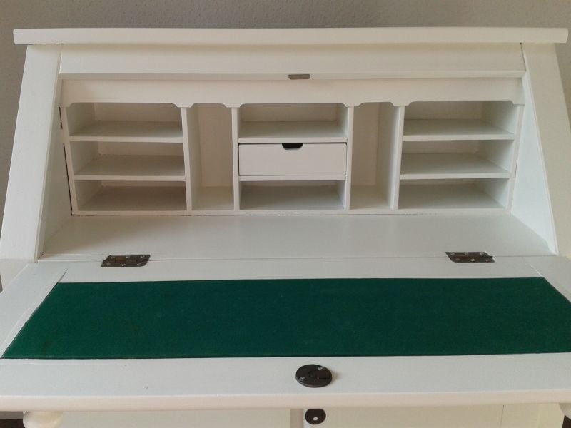 Klein oud bureau behandeld met Annie-Sloan krijtverf en was.